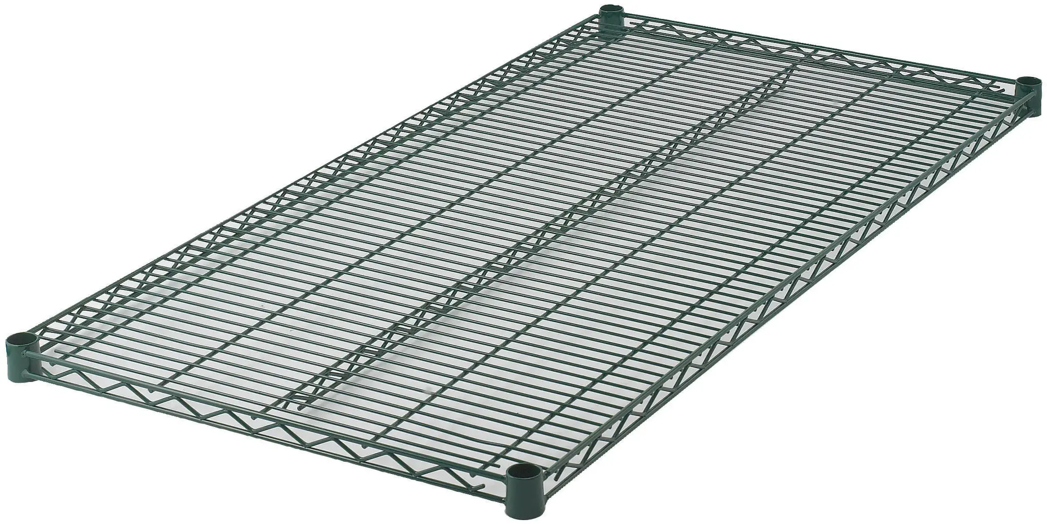 The wire construction of the Winco VEX-2442 Shelf is epoxy coated in a sleek green finish, offering both durability and a touch of style. This coating not only enhances the shelf's longevity but also makes it resistant to corrosion, an essential feature for maintaining hygiene in a kitchen setting. The NSF certification further underscores its suitability for use in food service environments, guaranteeing that it meets strict public health and safety standards.