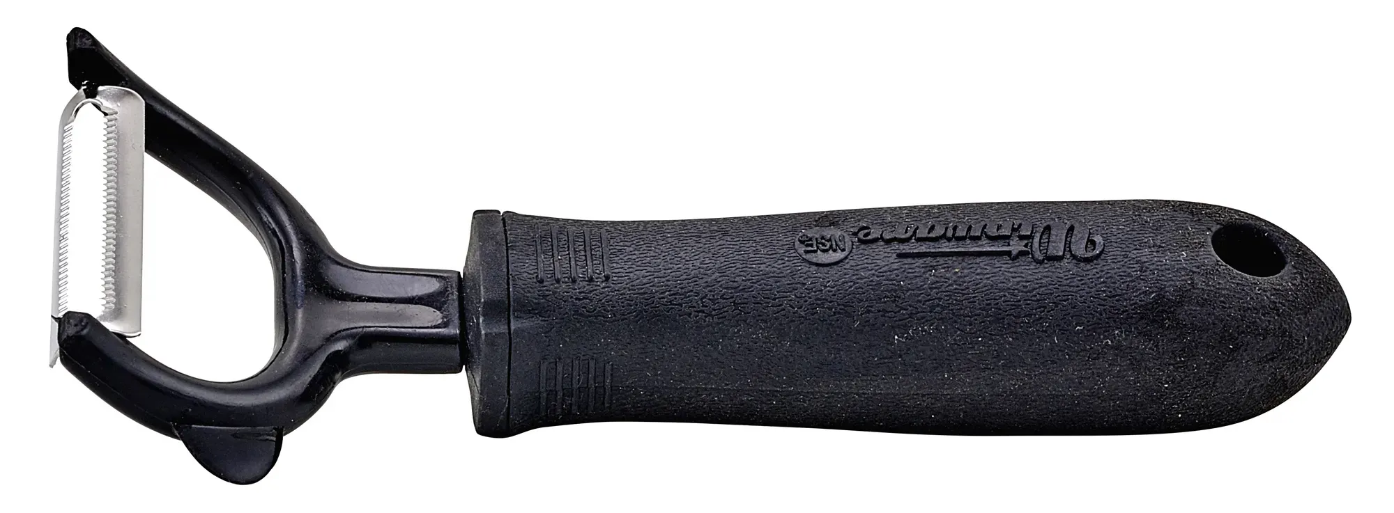 The sleek black design of the Winco Stainless Steel Peeler not only adds a touch of sophistication to your kitchen tools but also meets NSF certification standards, ensuring it adheres to strict public health and safety guidelines. This certification is particularly important in a professional kitchen, where food safety is paramount.