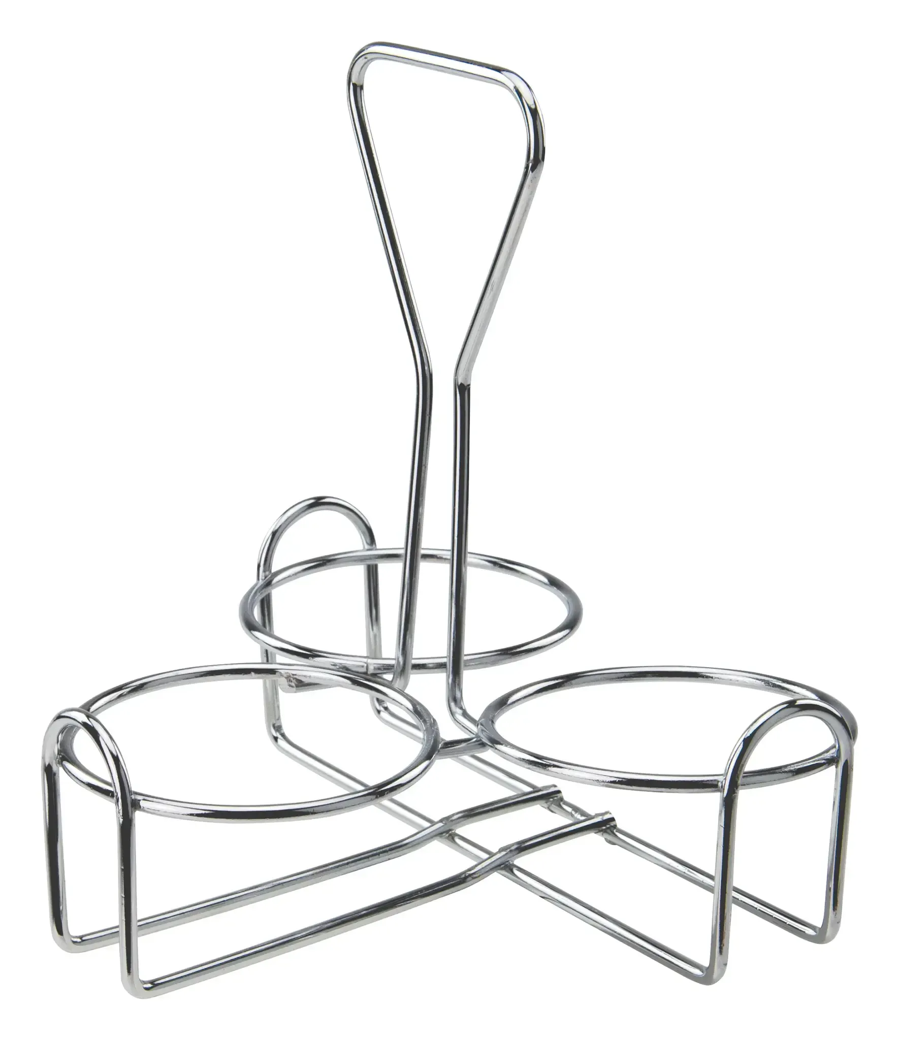 Ideal for professional settings, the Winco Condiment Jar Holder is an essential addition to any restaurant's tabletop organization. Designed with precision and functionality in mind, this 3-ring holder is specifically crafted to fit the CJ-7P and CJ-7G condiment jars, ensuring a seamless and secure fit for your condiments.