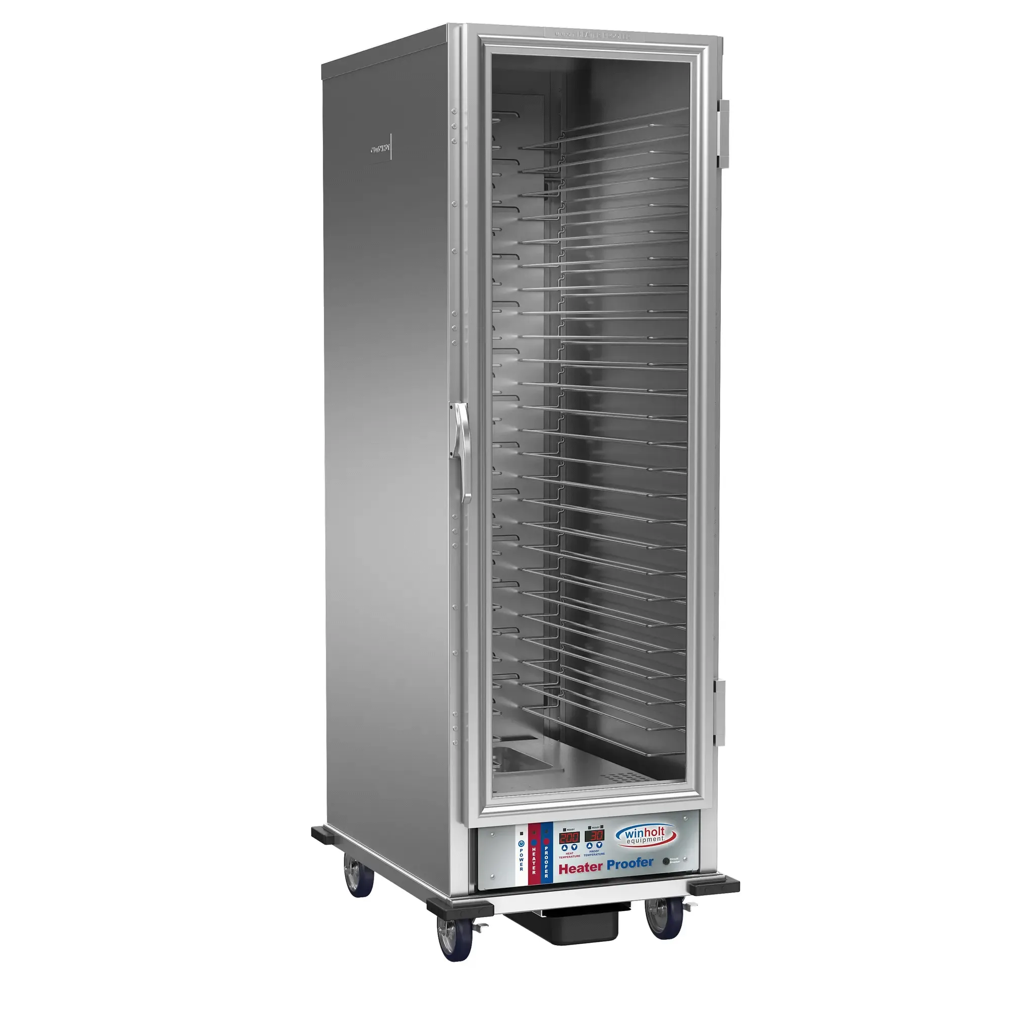 Enhance food display options with the Winholt NHPL-1825-UNC-DGT Proofer Cabinet. This mobile, full-height cabinet is designed for commercial restaurant use, offering convenience and efficiency. Made of durable aluminum construction, it features forced air circulation to ensure even heat distribution, keeping your food at the perfect temperature. The removable chrome wire pan slides can be adjusted on 2" increments, accommodating up to 28 pans measuring 18" x 26". The dual proof/heat control allows you to customize the settings for different types of food, while the digital control and LED digital thermometer display provide precise temperature monitoring. The field-reversible clear door with a magnetic door latch allows for easy access and visibility. With corner bumpers and swivel casters, this proofer cabinet is easy to maneuver and transport. Trust Winholt for reliable, NSF-certified equipment that meets your restaurant's needs.