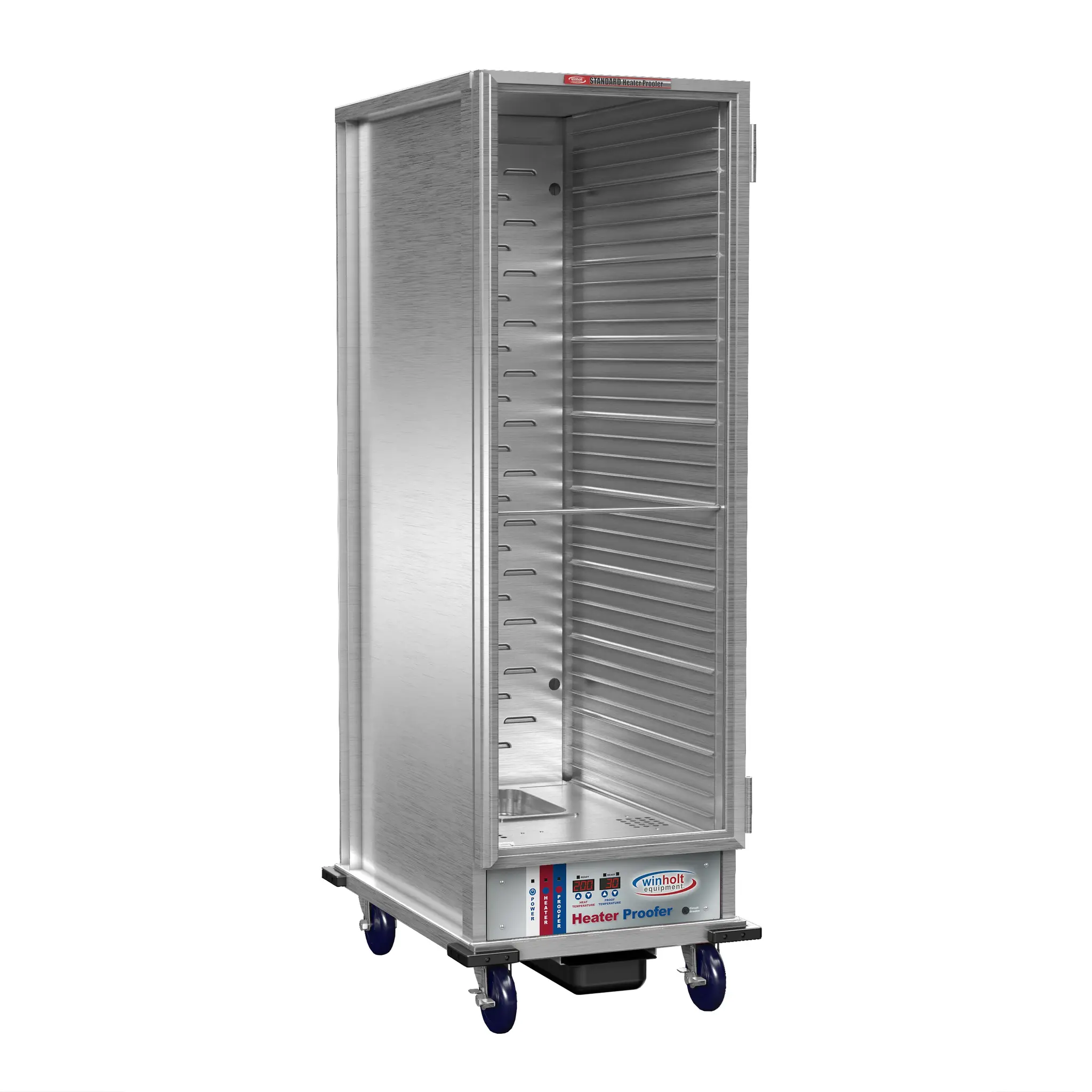 Efficiently manage kitchen equipment with the Winholt NHPL-1836C-DGT Proofer Cabinet. This mobile, full-height cabinet is designed for commercial restaurant use, offering convenience and functionality. Constructed with durable aluminum, it features forced air circulation to ensure even heat distribution, making it perfect for proofing and heating food. The cabinet can accommodate up to 35 pans measuring 18" x 26", providing ample space for your culinary creations. With dual proof/heat control and a lift-off clear door, you can easily monitor and access your dishes. The removable control drawer and LED thermometer display add to the cabinet's user-friendly design. Equipped with corner bumpers and swivel casters, including two with brakes, this cabinet is easy to maneuver and secure in any kitchen layout. Trust in the Winholt NHPL-1836C-DGT Proofer Cabinet to streamline your kitchen operations and deliver exceptional results.